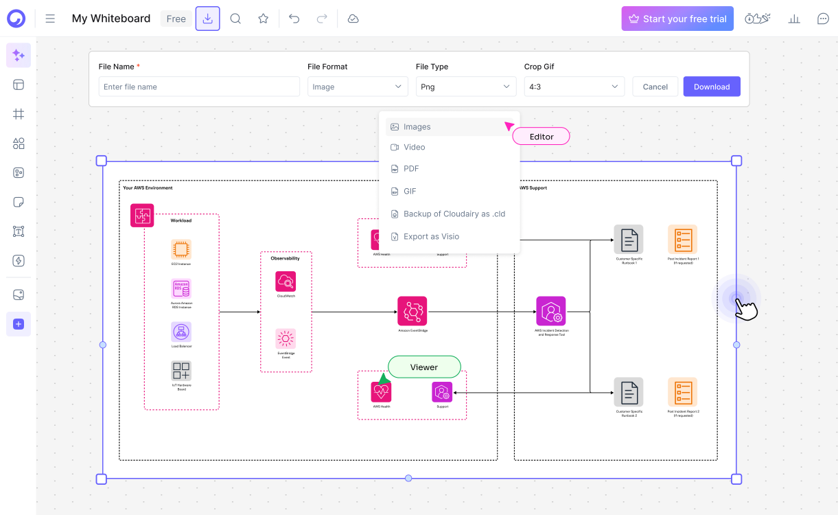 Cloudairy 2.0 gives you a complete visual creation environment without the need for external design or diagramming tools.