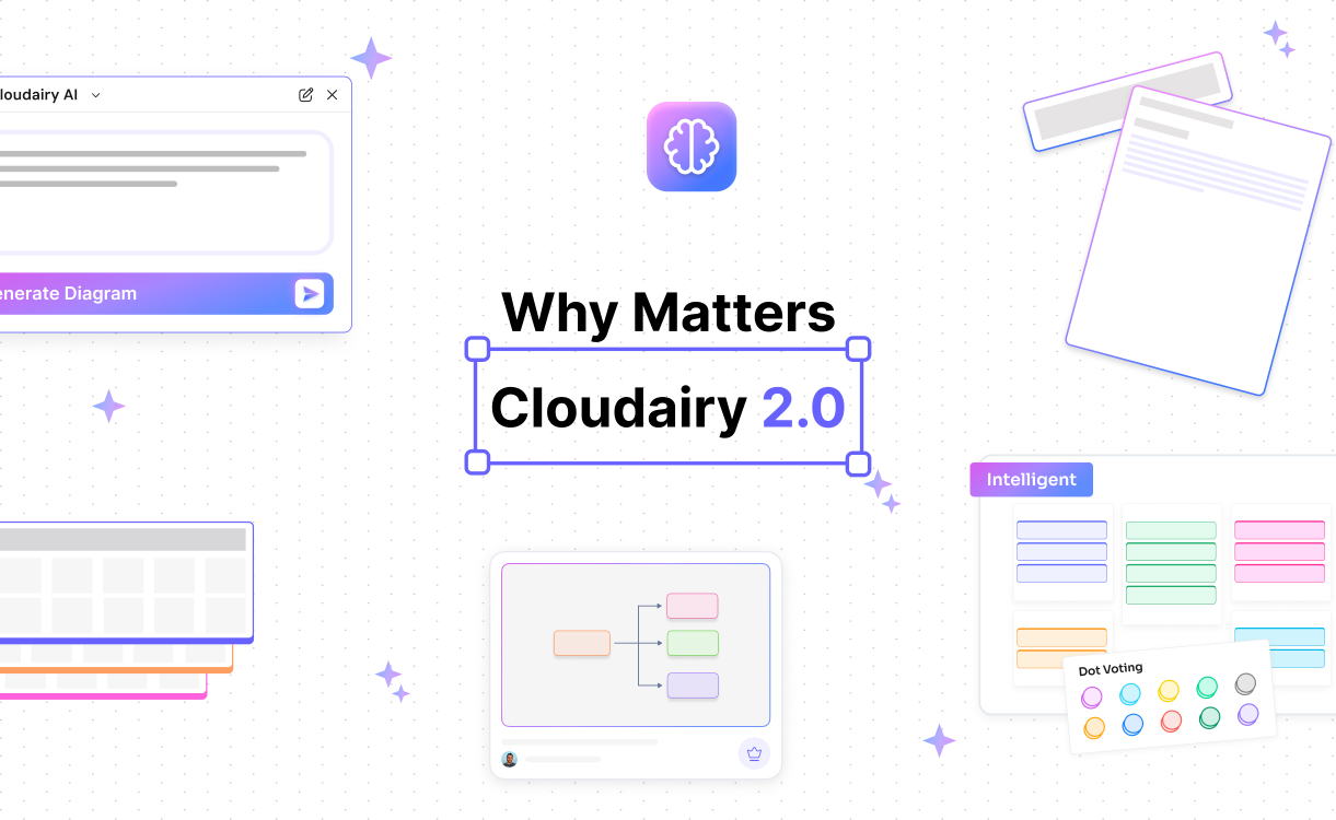 Cloudairy 2.0 elevates team collaboration, giving you everything you need to brainstorm, run workshops, align decisions, and deliver outcomes together.