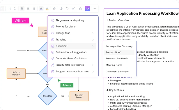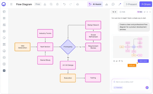複雑なプロセスを数秒で明確なビジュアルフローチャートに変換します。CloudairyのAIフローチャート作成ツールは、テキストの説明から誰もが理解できるプロフェッショナルなダイアグラムを自動作成します。ソフトウェアロジック、ビジネスワークフロー、ディシジョンツリーのマッピングなど、AIが面倒な作業を代行し、アイデアの洗練に集中できます。