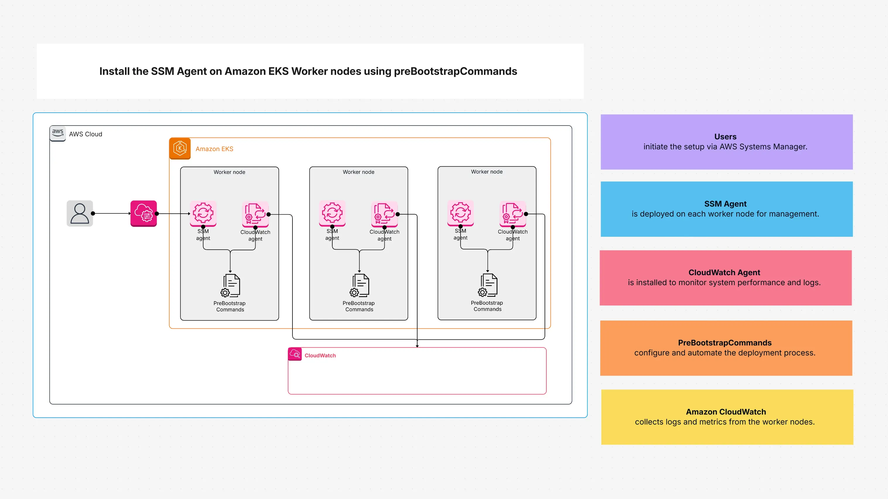 Install the SSM Agent on Amazon EKS Worker nodes using preBootstrapCommands